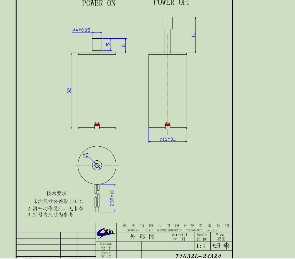 | 產(chǎn)品型號(hào) | 圓管電磁鐵T1632L-24A24 |