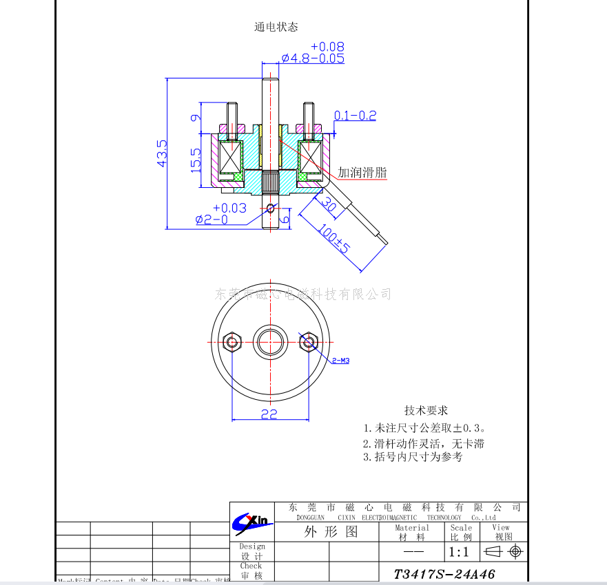 由于采用高導磁的材料和帶有錐形配合的磁路結(jié)構(gòu),因此產(chǎn)品雖然體積小、重量輕,但與常規(guī)的小型電磁鐵相比,其行程和吸引力都較大,因其繞線空間利用率高,線圈部分是敞開式的,散熱效果好。